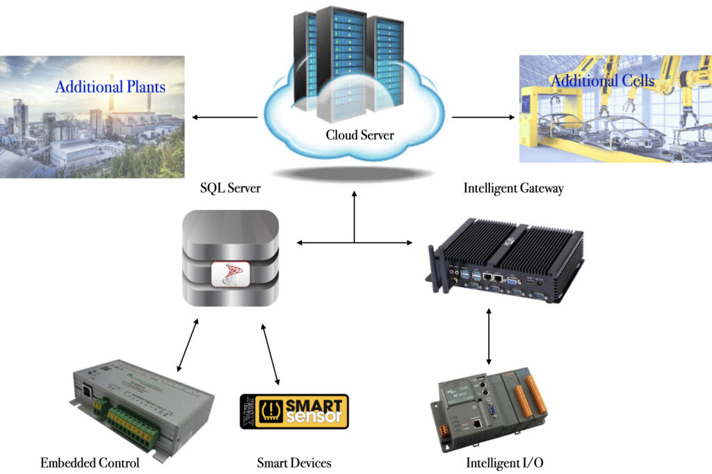 When an application is built in the cloud, the entire system can be downloaded to one location or can be parsed to multiple locations based on local application needs. In this configuration, an intelligent gateway is utilized within a cell where a cell can be an entire plant, a subset of the plant or another physical entity like a pipeline.
